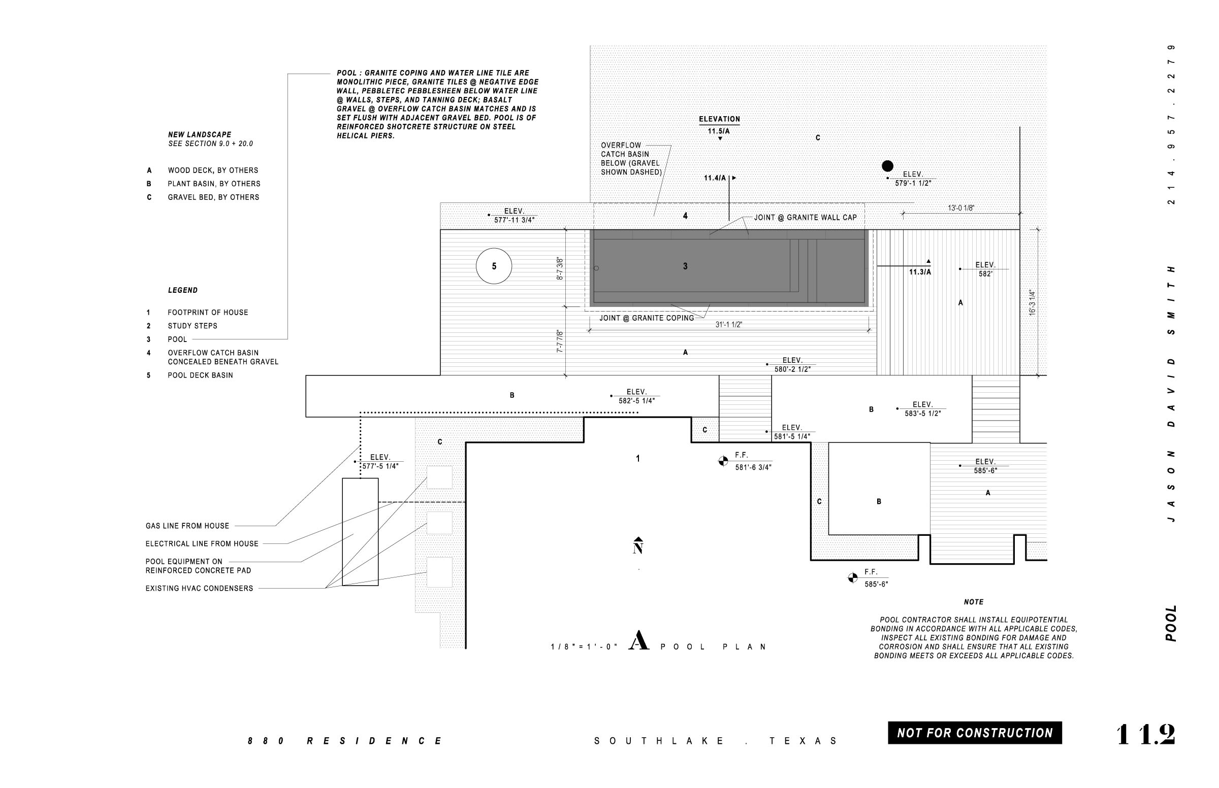 materials : shotcrete . granite . pebble pool finish . raw ipe (wood) decking