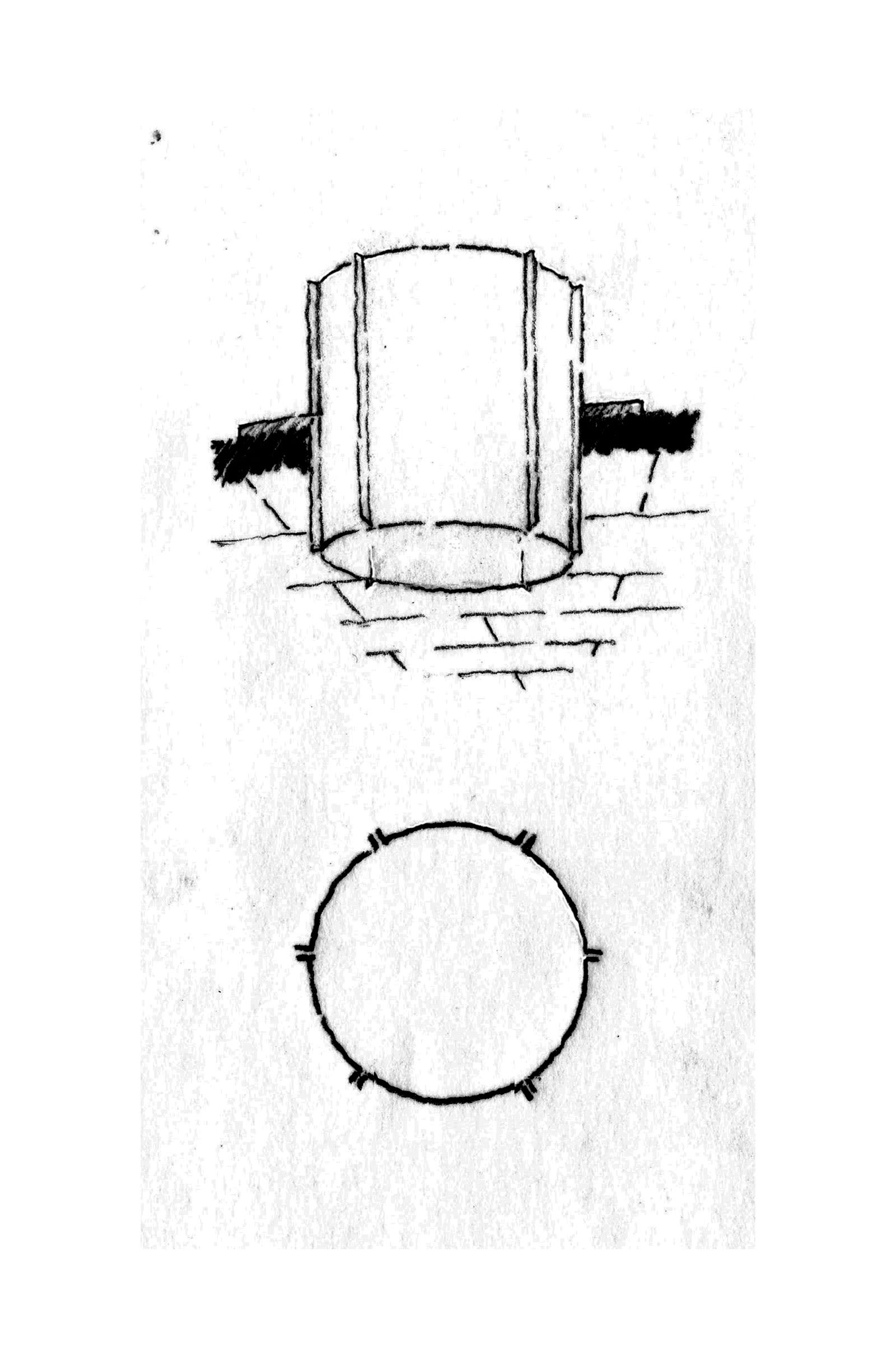 LIGHT BARREL One 7’ diameter cylinder penetrates the roof of the porch. While working to provide morning light to the porch’s west end, this skylight is left open to receive what falls and to be reminded where it comes from.