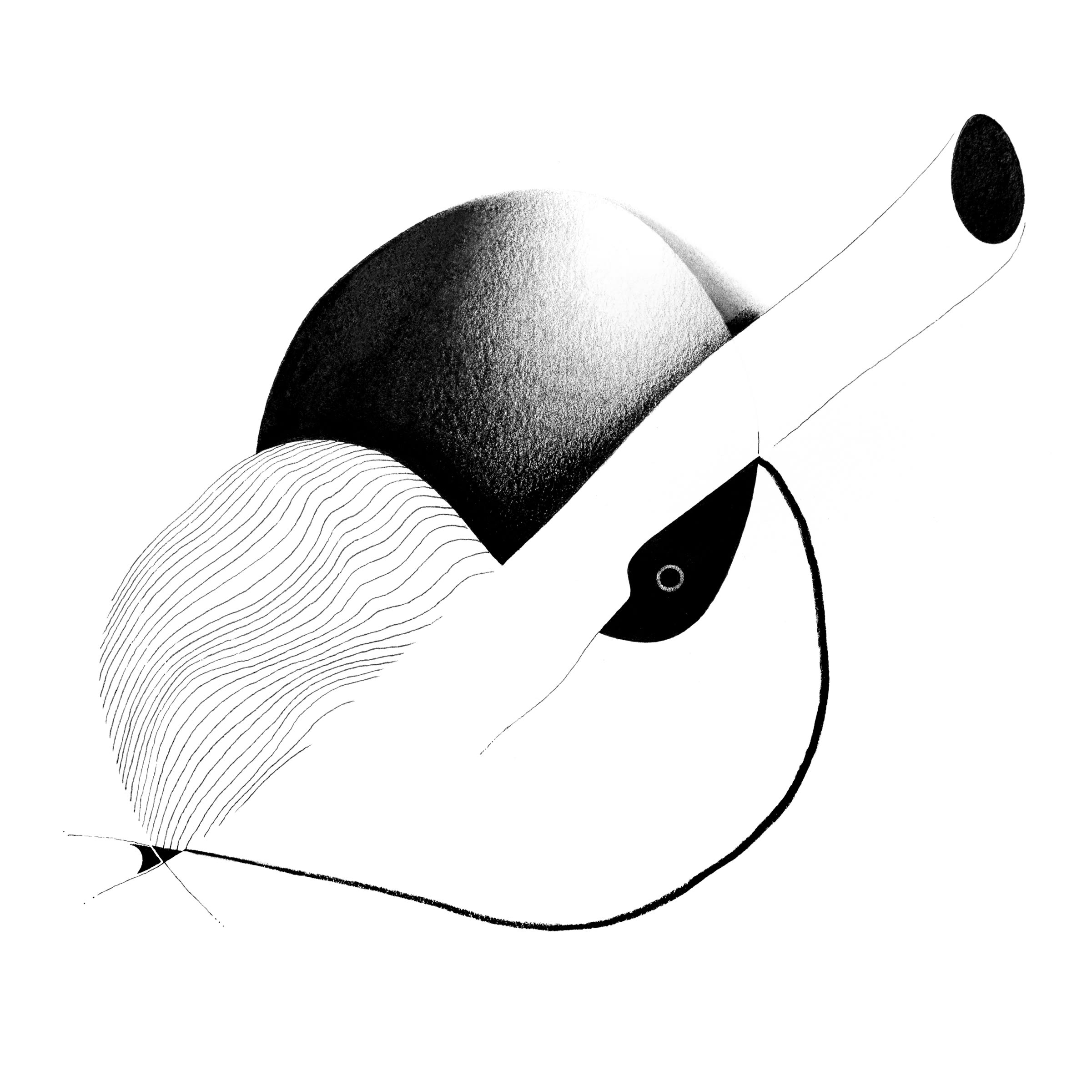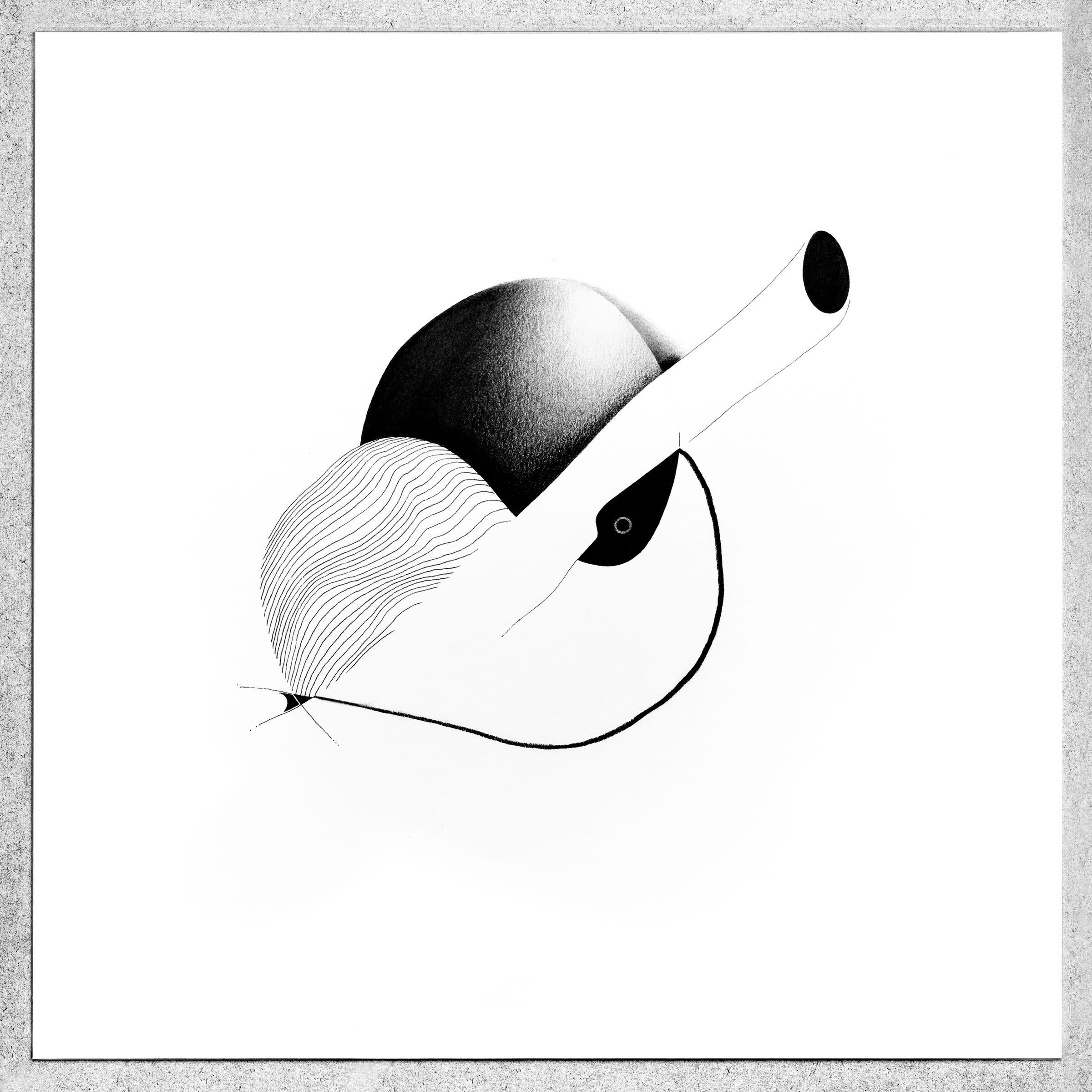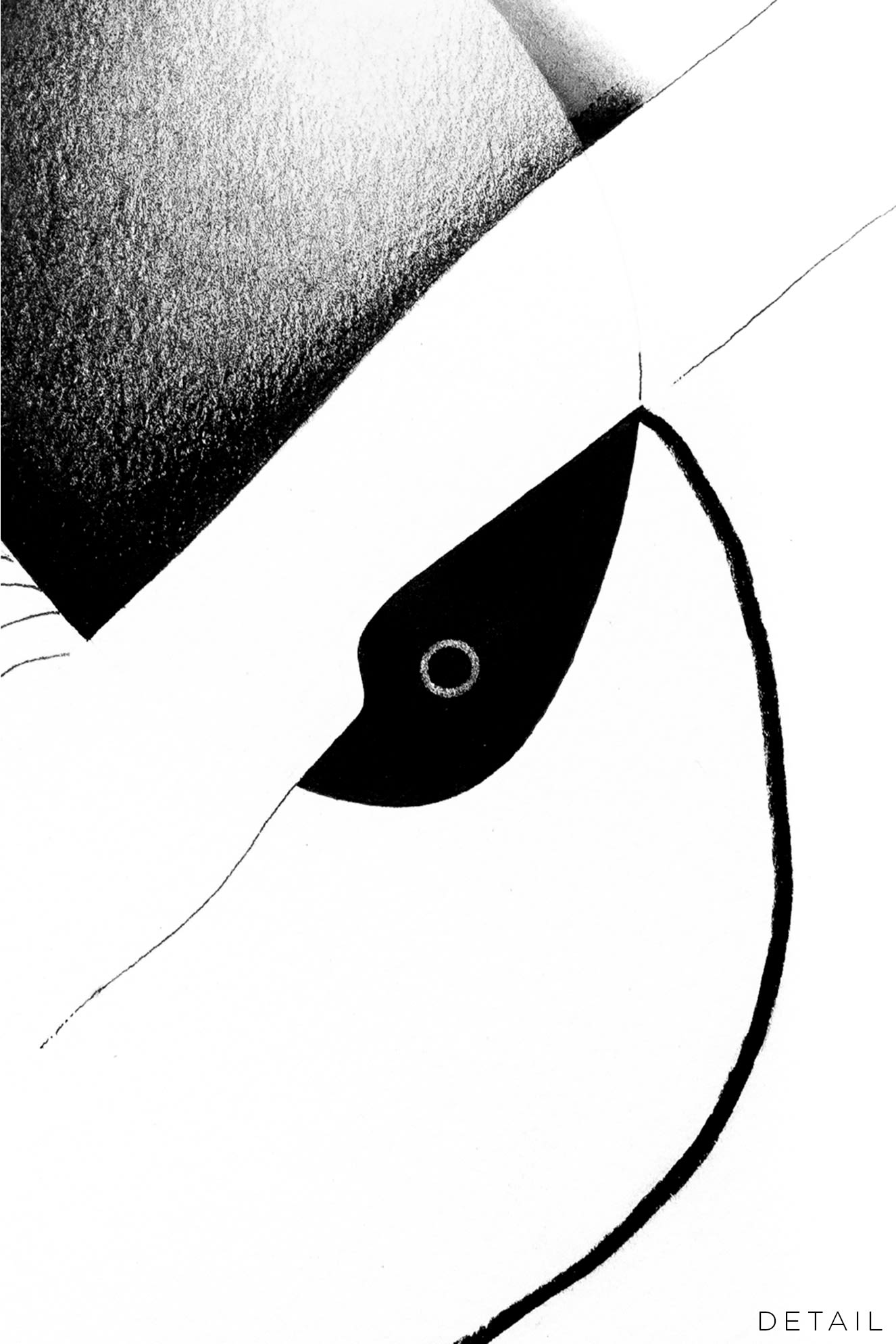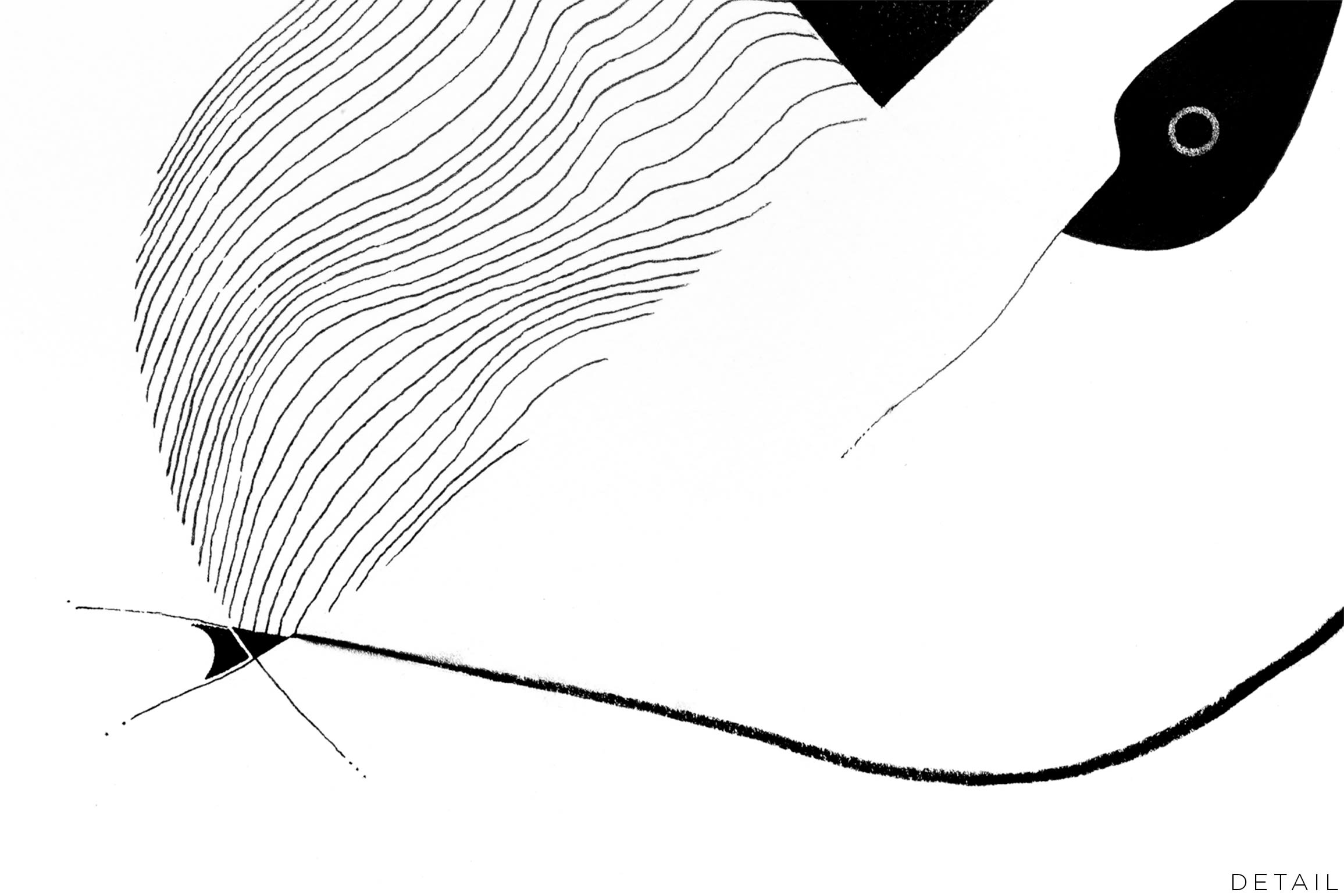 The images are always made of colorless mixed media of highly varied values that comment on relationships of the seemingly unrelated.