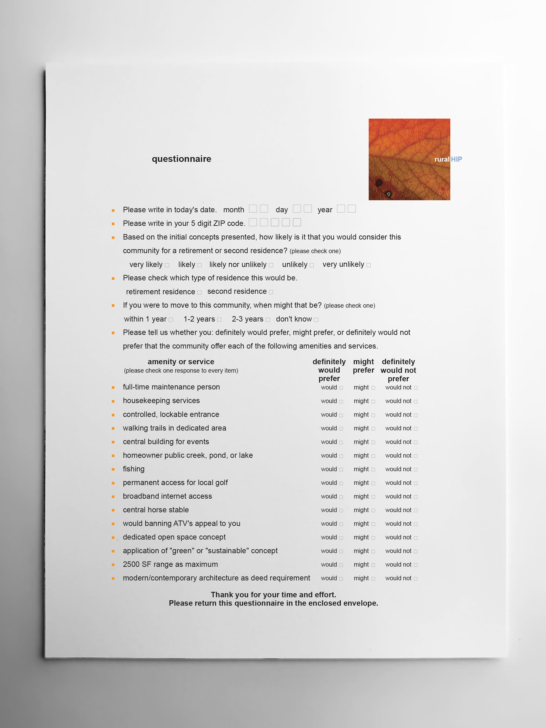 Brand recognition of the mark would be achieved by repeating the exact layout of the company name interacting with a perfect square. The image within the square would change from one ad campaign to the next. The varying ‘swatches’ of nature on a bright white background would draw minds in the city to the quieter, more spacious Rural Hip.