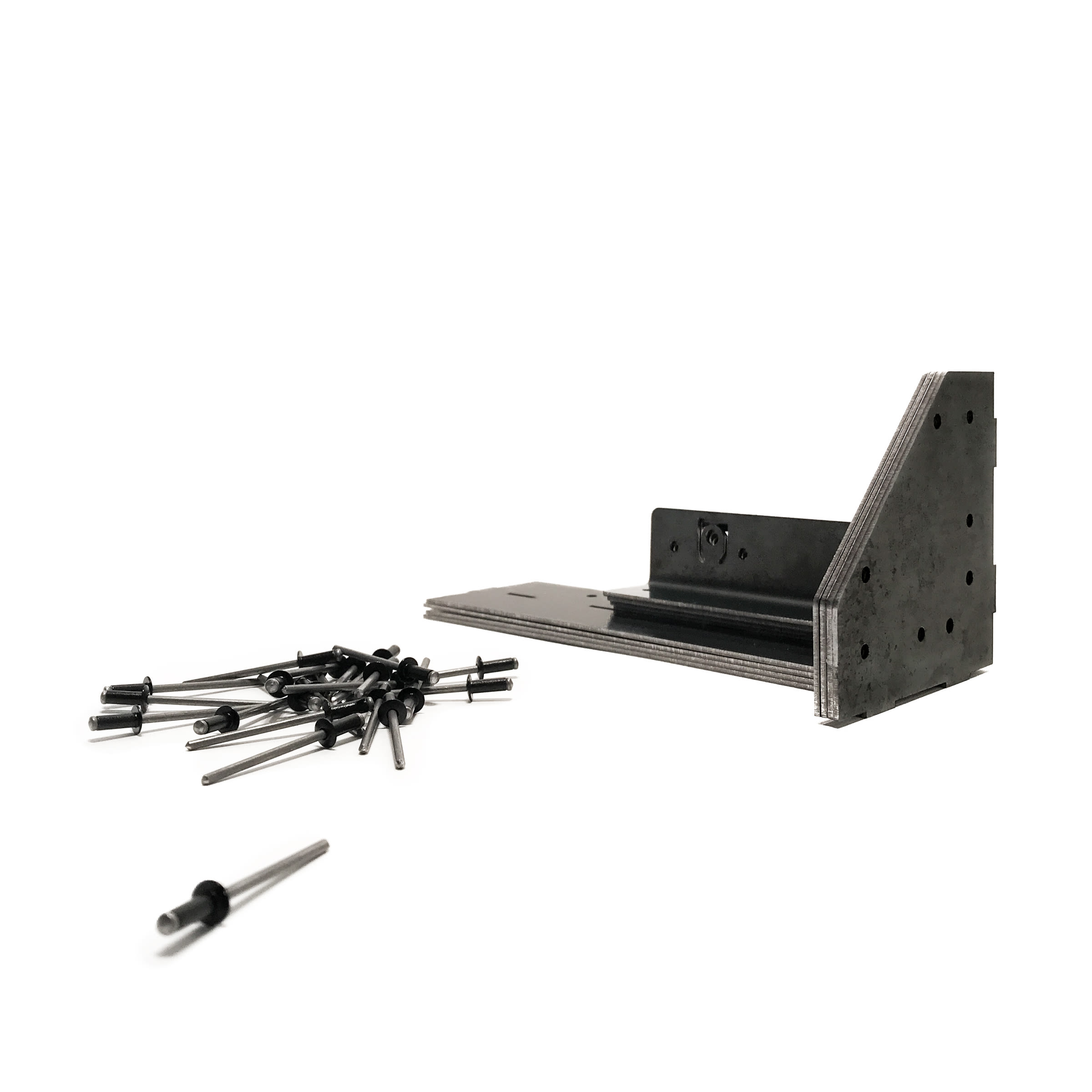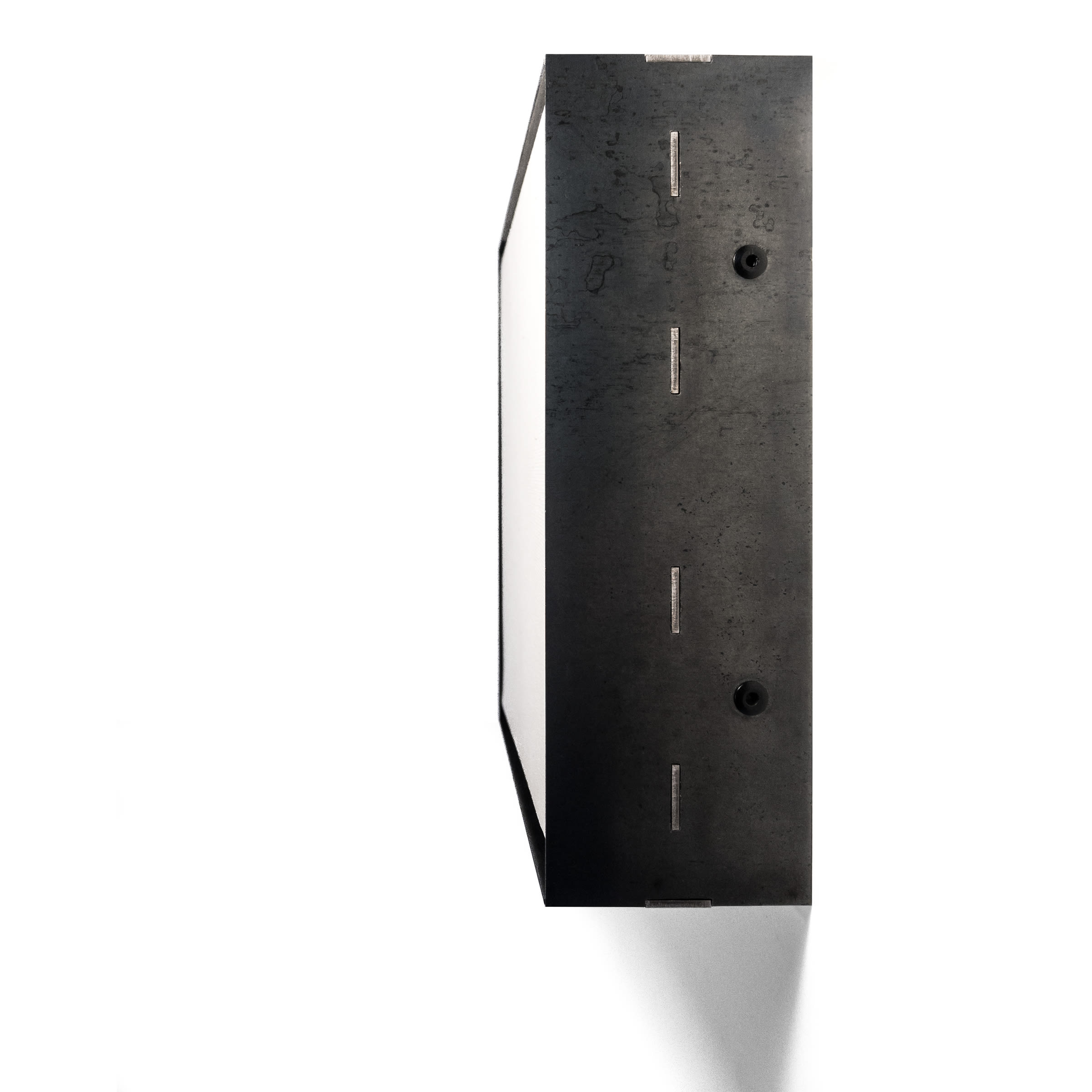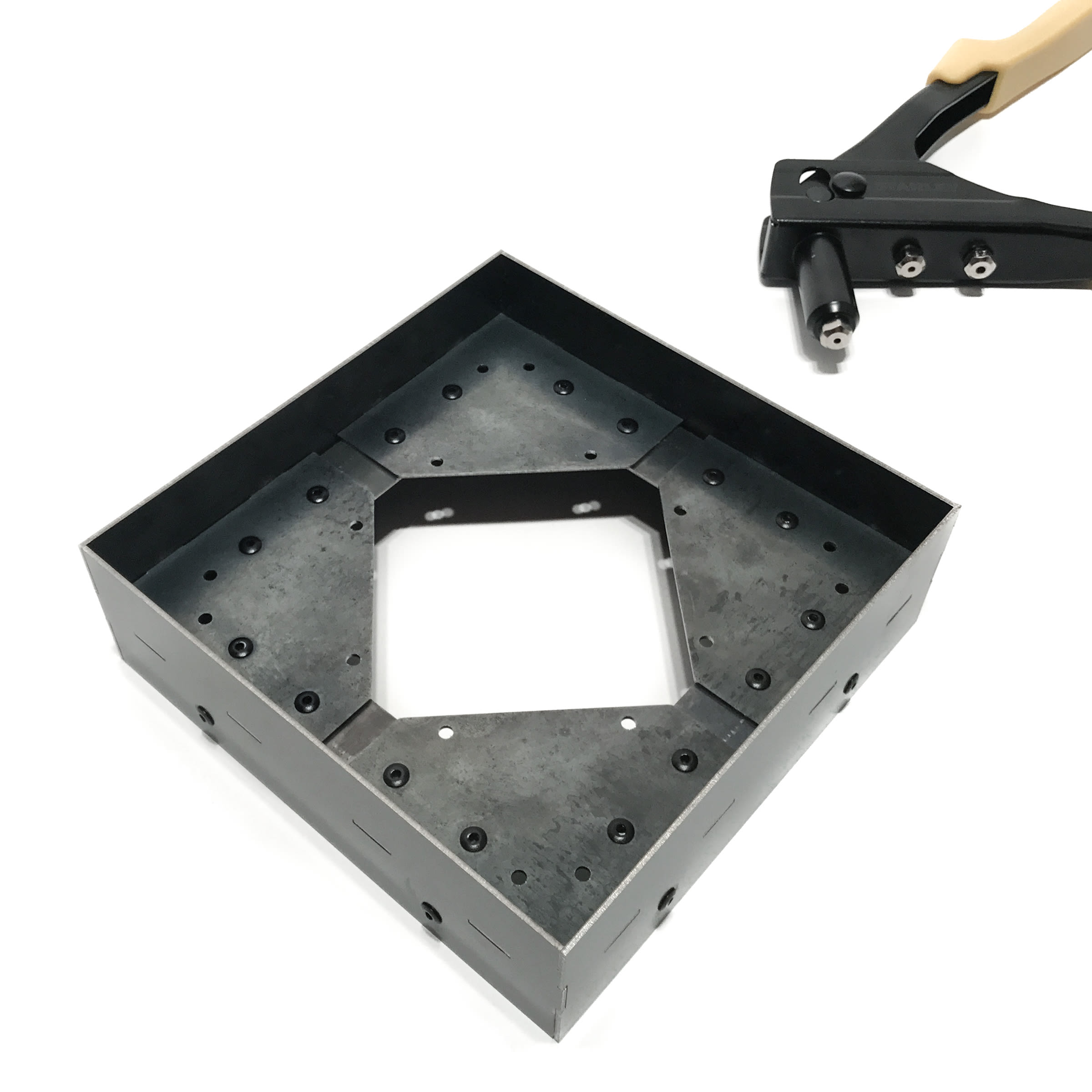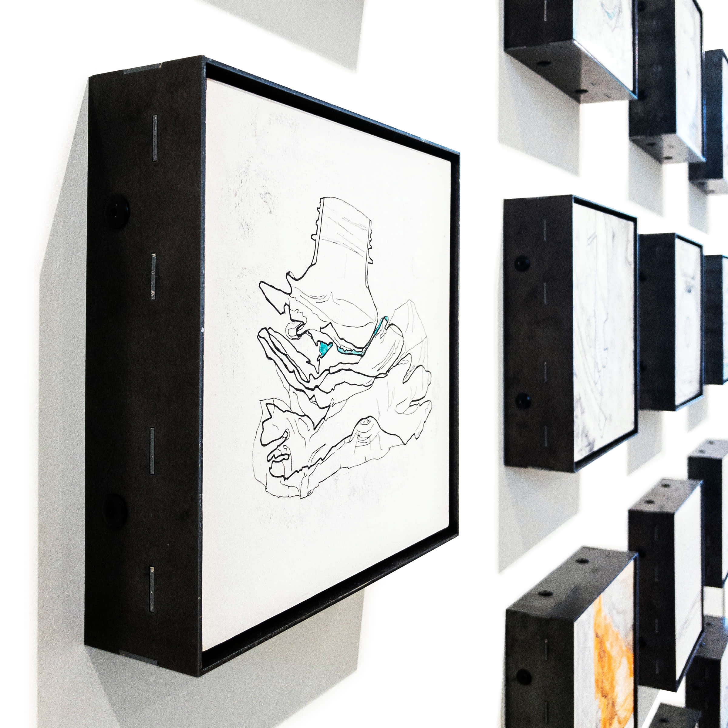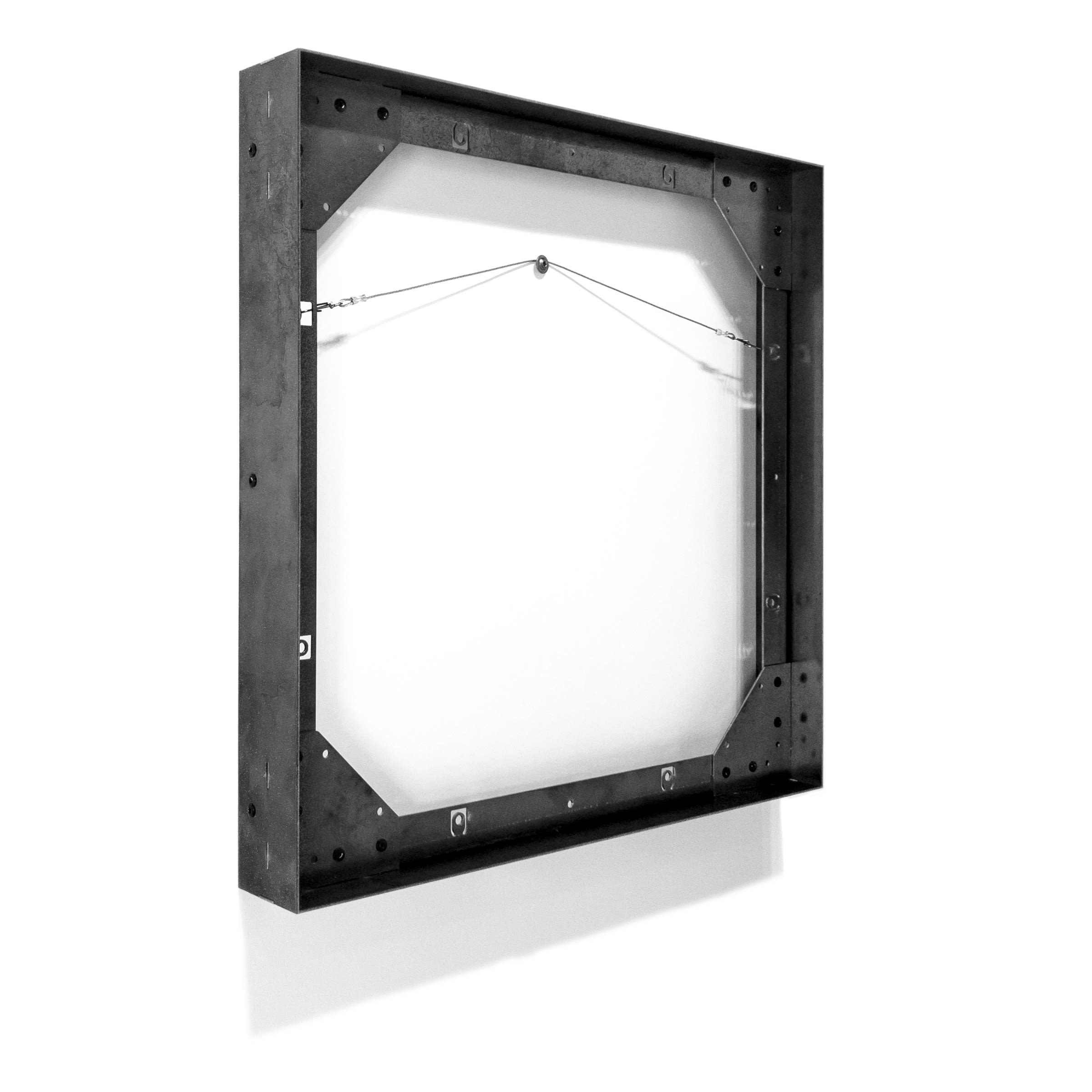 In late winter of '17, an artist was working on her first one-person gallery show and approached us about designing and fabricating frames for that work. At its essence, the design problem was to efficiently address the parameters of shipping, storage, assembly, mounting, disassembly, reuse, recycling . . . all while - of course - making the frames beautiful. Our solution ended up as an interlocking kit of steel parts to be put together after they get to the artist. Made of raw steel and fastened with common blind rivets, the frames reach for aesthetic honesty and the satisfaction that comes with the physical act of making.