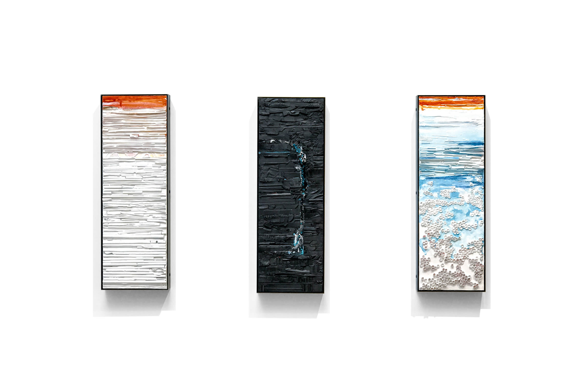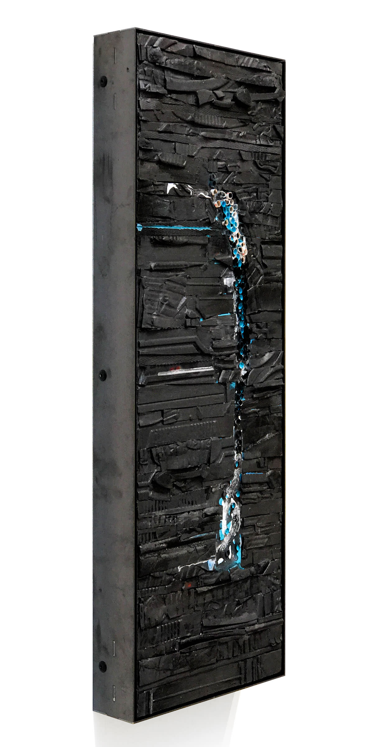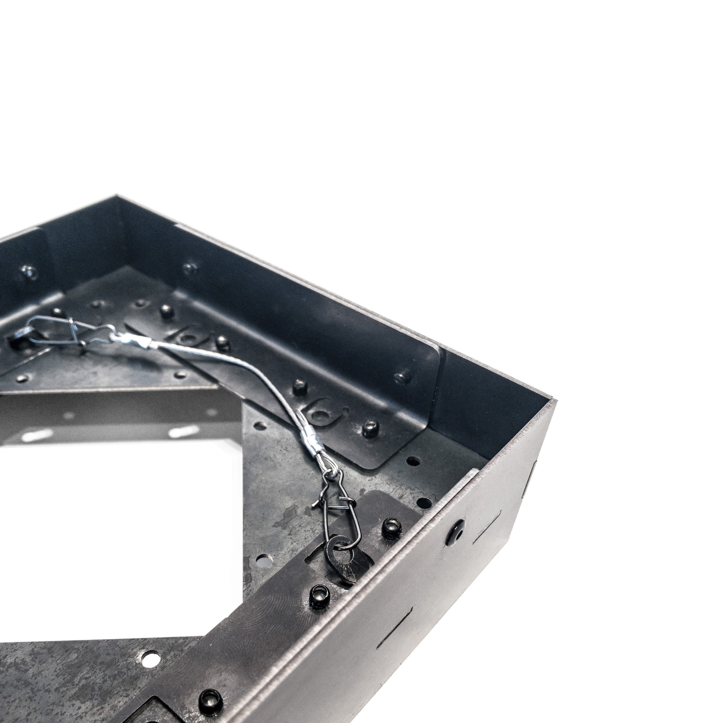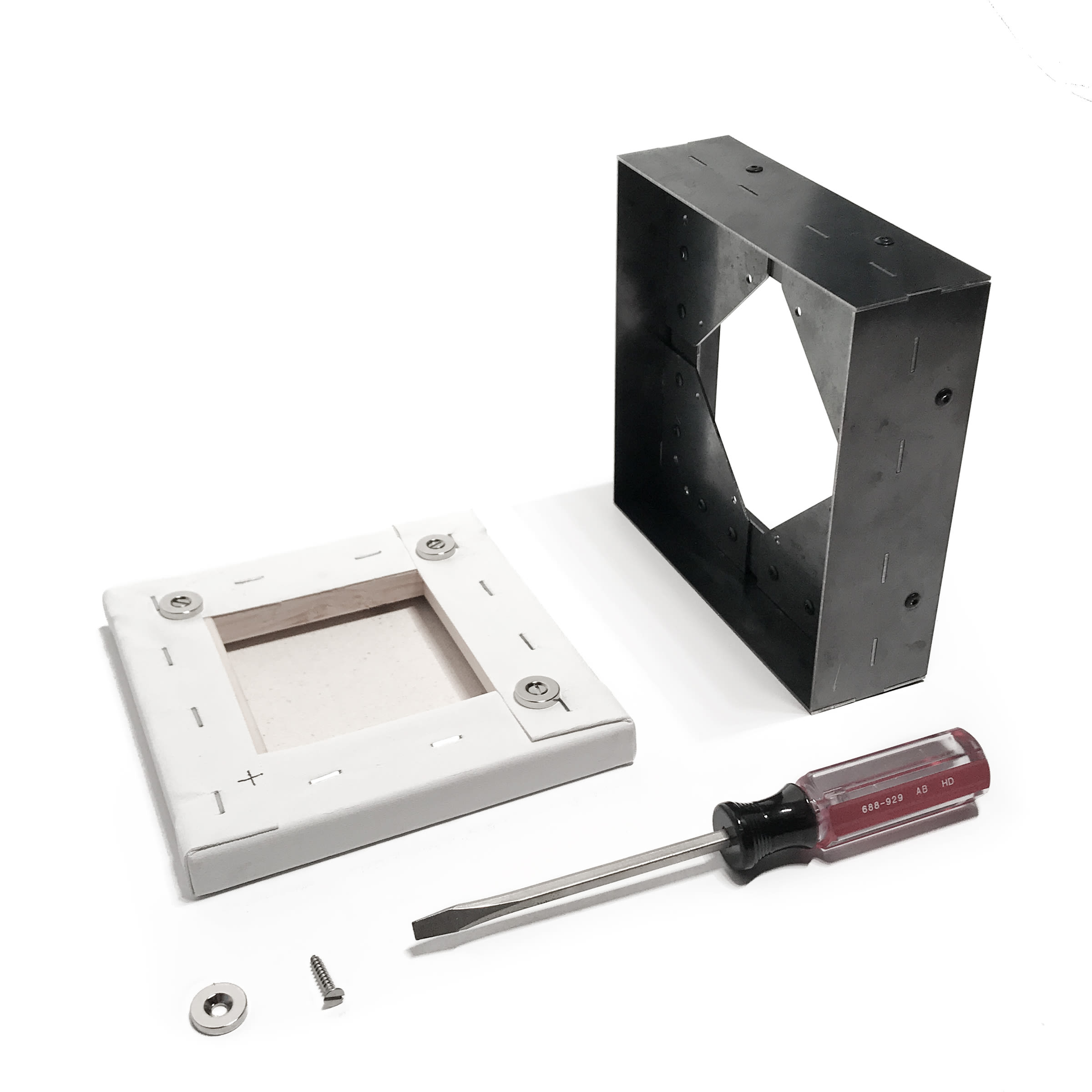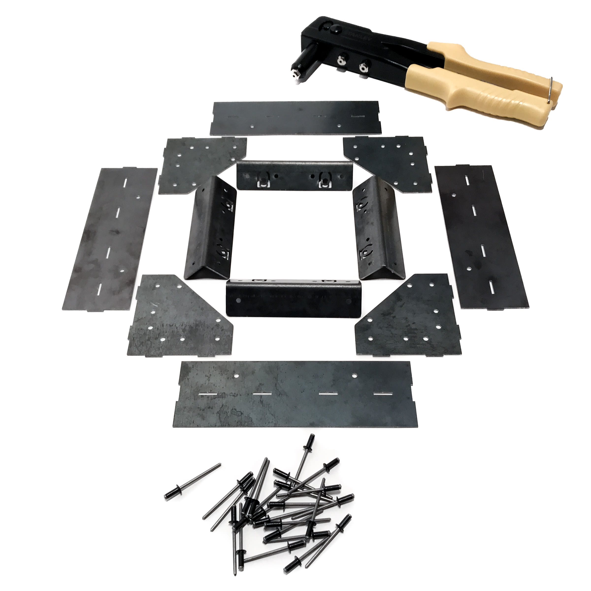 In late winter of '17, an artist was working on her first one-person gallery show and approached us about designing and fabricating frames for that work. At its essence, the design problem was to efficiently address the parameters of shipping, storage, assembly, mounting, disassembly, reuse, recycling . . . all while - of course - making the frames beautiful. Our solution ended up as an interlocking kit of steel parts to be put together after they get to the artist. Made of raw steel and fastened with common blind rivets, the frames reach for aesthetic honesty and the satisfaction that comes with the physical act of making.